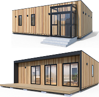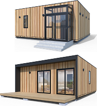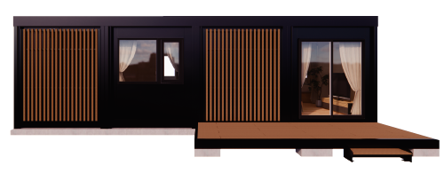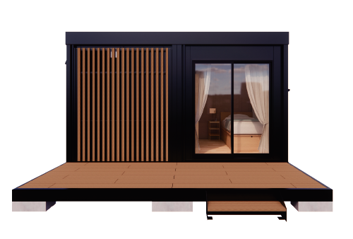 ブラック、またはブルーを基調にしたシンプルな箱型デザイン。クレーンで吊り上げて設置するだけの超スピード施工が可能です。オプションのルーバーパネルとデッキユニットのカラーは4色から選ぶことができます。
