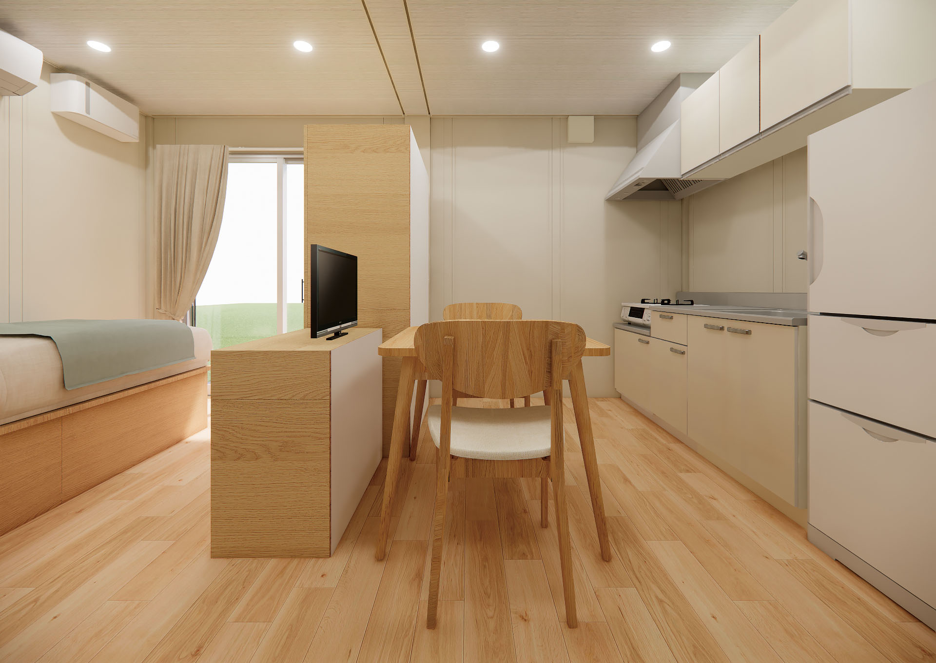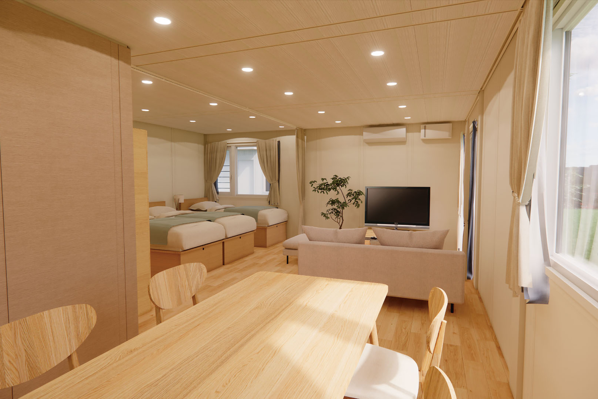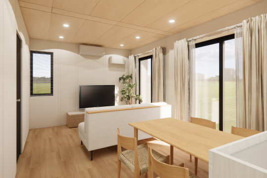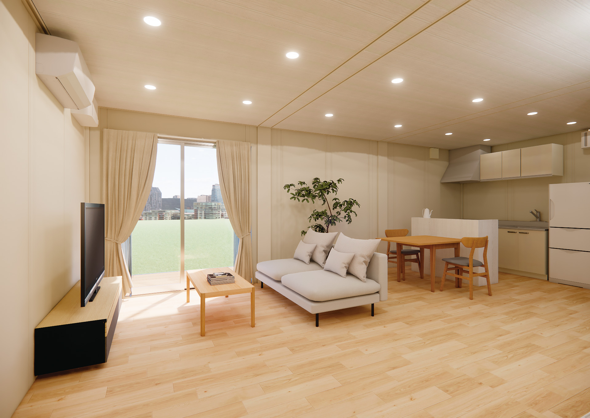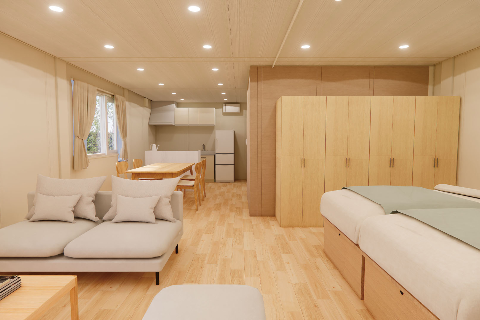 内装・基礎も含めて工業化し、職人不足といった被災地の課題を解決。