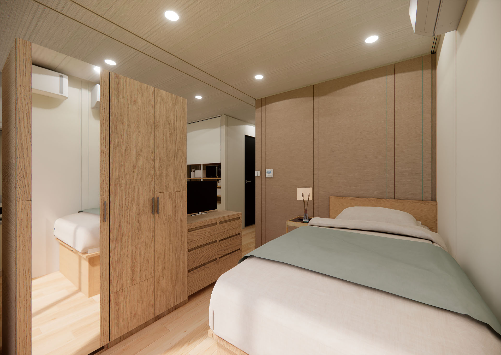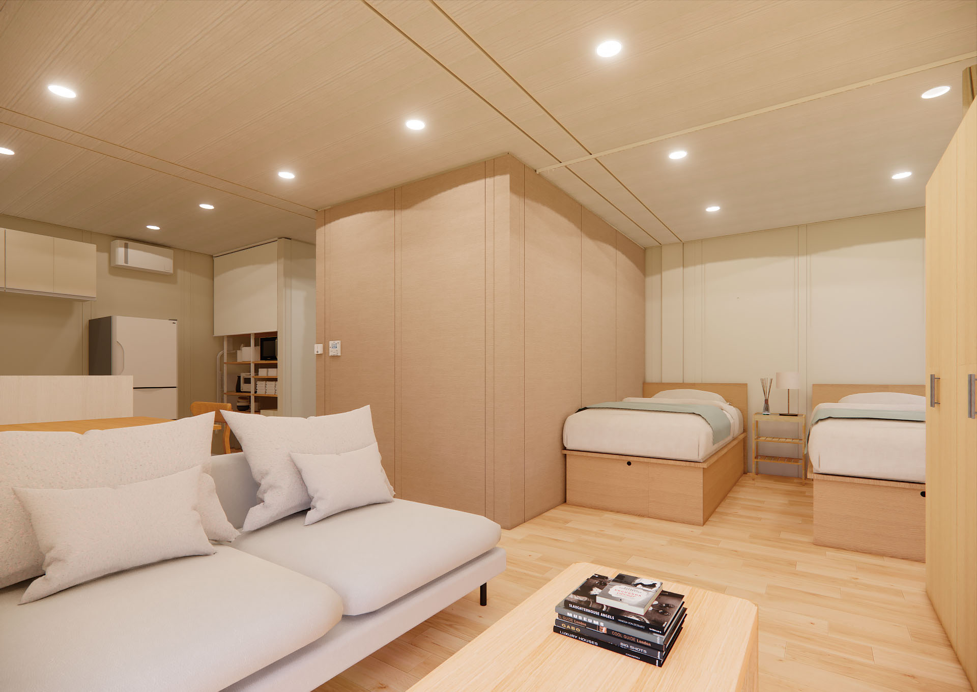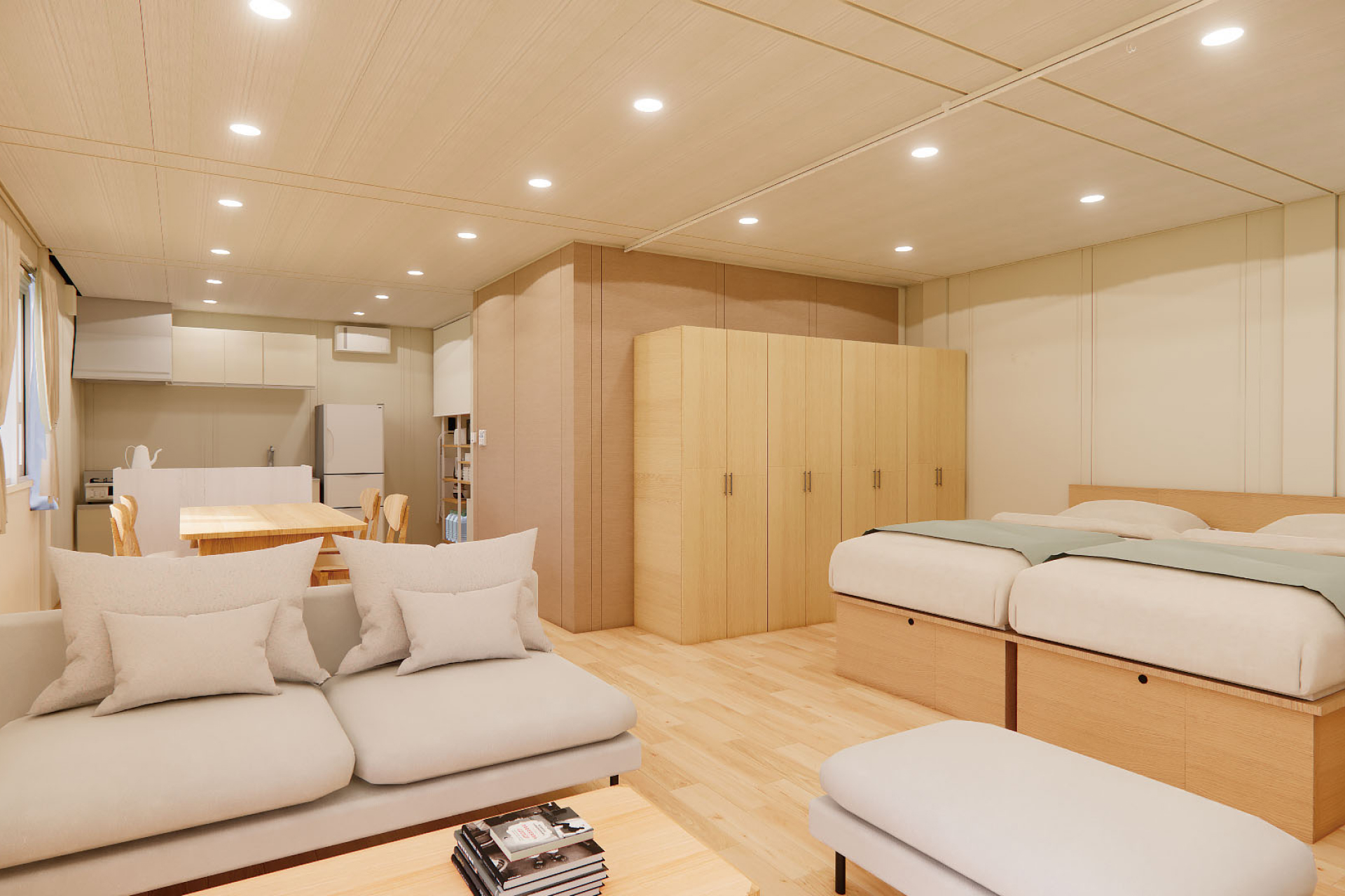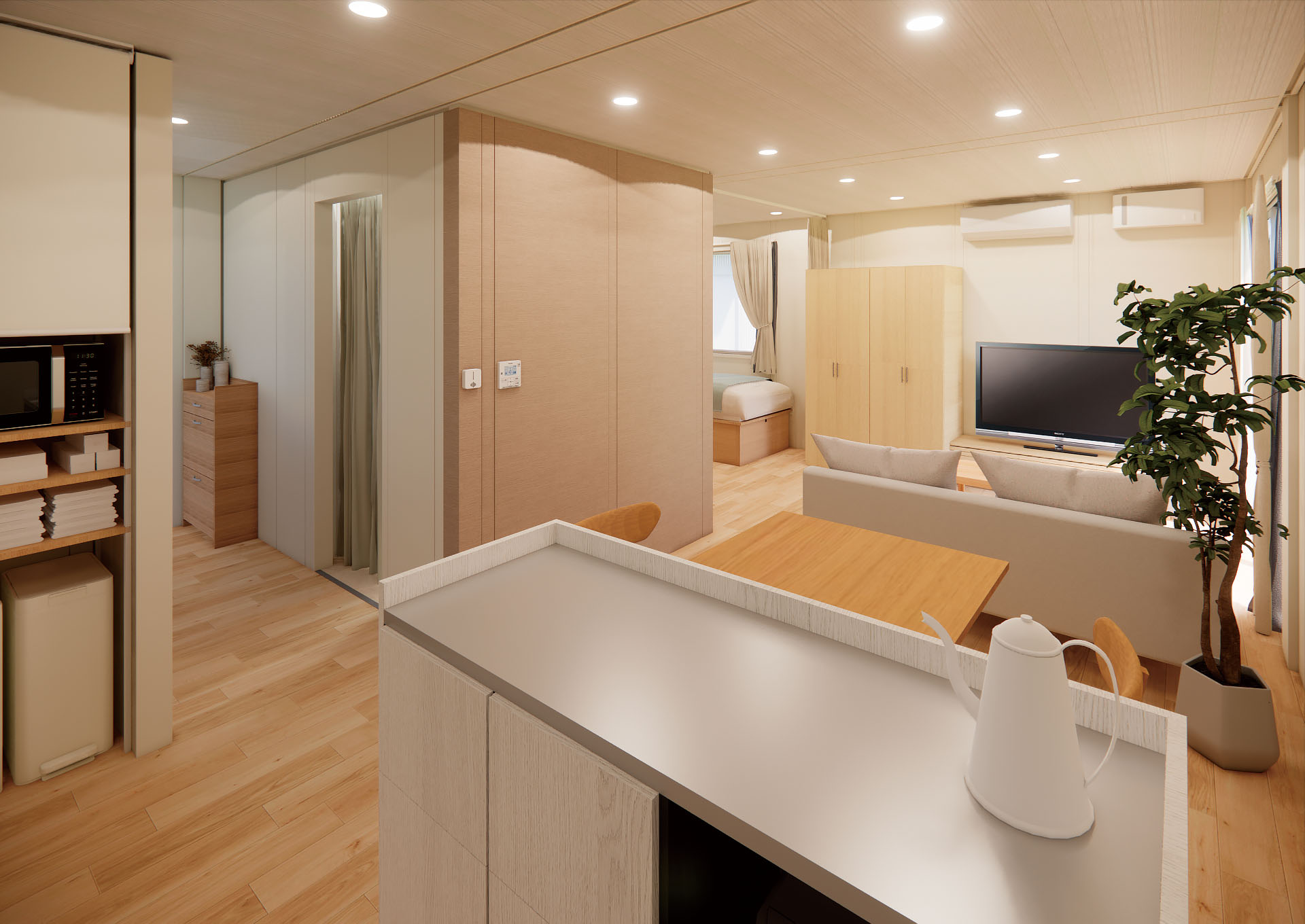 内装・基礎も含めて工業化し、職人不足といった被災地の課題を解決。