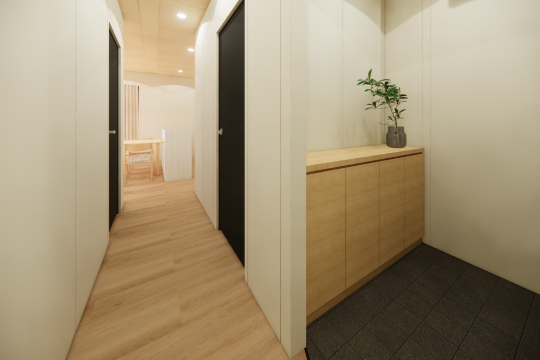外壁には木目調サイディングを採用し、落ち着きのある質感と自然な風合いを演出します。室内はビニルクロス仕上げで、明るく居心地の良い空間に仕上げました。