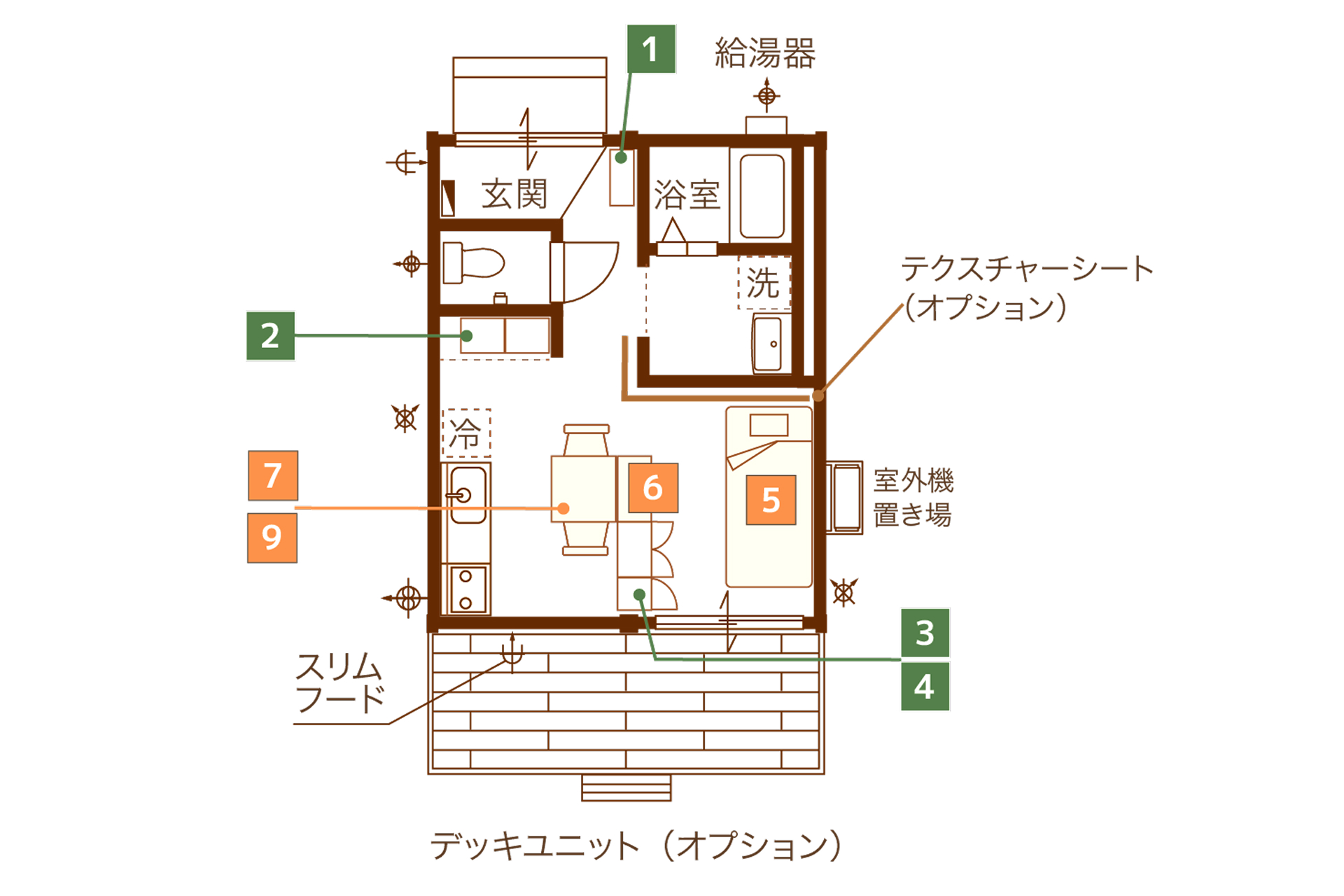 シンプルなモバイルスペースの構造はそのまま、屋根や床の断熱材をより厚くグレードアップさせました。2025年改正の省エネルギー基準における石川地域に対応しています。