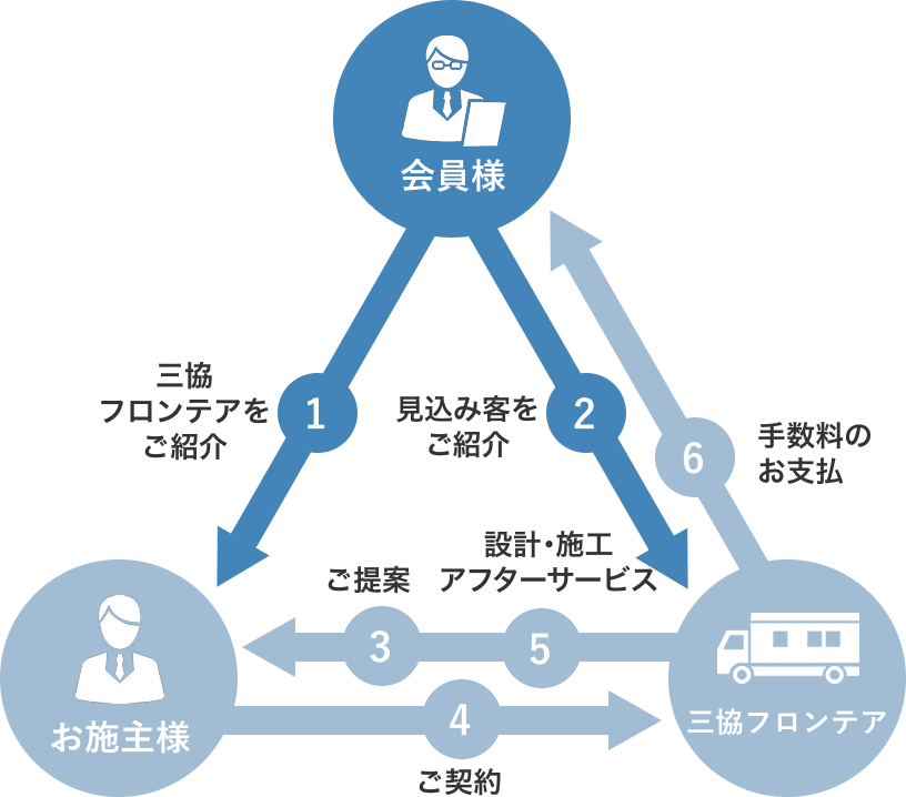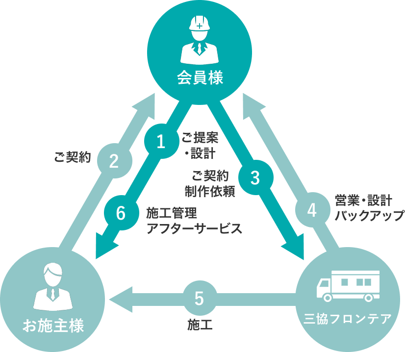 - 当社がお施主様と工事請負契約いたします。