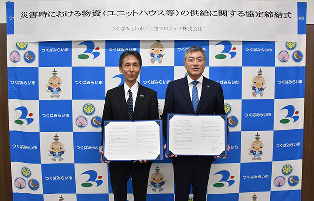 三協フロンテア株式会社(本社:千葉県柏市、代表取締役社長:長妻 貴嗣)は、つくばみらい市(茨城県)と「災害時における物資(ユニットハウス等)の供給に関する協定」を締結しました。 この協定は災害時における被害者支援の充実を目的としております。