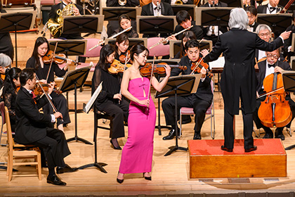 今回の曲目はパガニーニ:ヴァイオリン協奏曲第1番ニ長調 op.6と、ベートーヴェン:交響曲第5番ハ短調 op.67 「運命」をお届けしました。指揮者には国内外での演奏はもとより、国際音楽セミナーを開催するなど教育活動にもご活躍の場を広げられている大友 直人氏、またヴァイオリンには人気、実力ともに日本を代表する神尾 真由子氏をお迎えしました。
