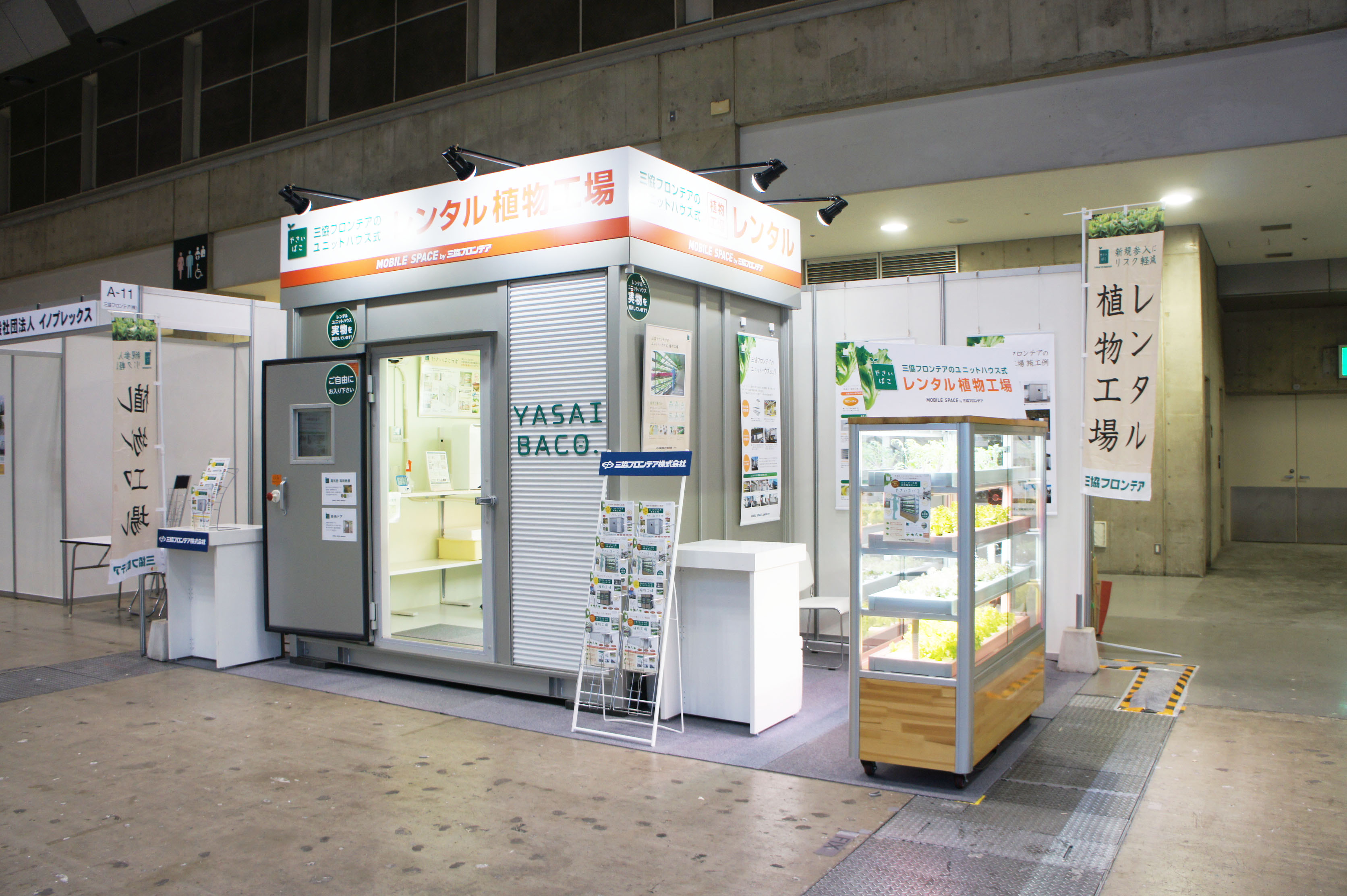 当社は、ユニットハウス式植物工場「やさいばこ」を展示いたします。栽培試験やLEDの試験などを行いやすいよう試験用途に特化して開発した新製品「やさいばこラボ」とショーケース型「やさいばこ」の2つの製品を展示し、仕様や性能を実際に見てご確認いただくとともに、その特長をわかりやすくご紹介いたします。ぜひ三協フロンテアブースへお越しください。