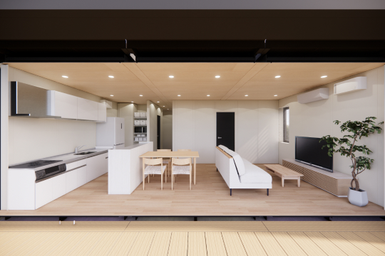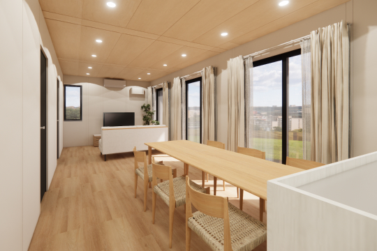 内装・基礎も含めて工業化し、職人不足といった被災地の課題を解決。